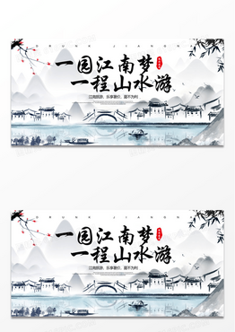 简约时尚中国风一园江南梦一程山水游旅游宣传展板