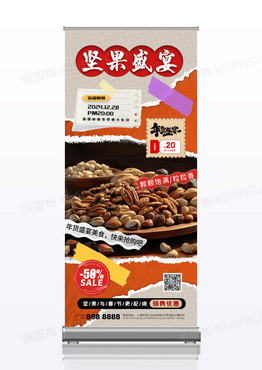 撕纸拼接风坚果盛宴年货盛宴核桃美食零食展架易拉宝