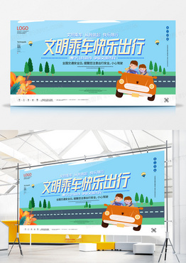 文明乘车快乐出行创意时尚宣传展板模板设计