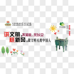 一组卡通矢量讲文明树新风礼仪场景套图素材