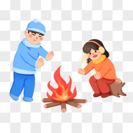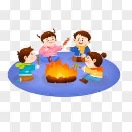 手绘卡通小朋友们篝火晚会聊天烧烤免抠元素