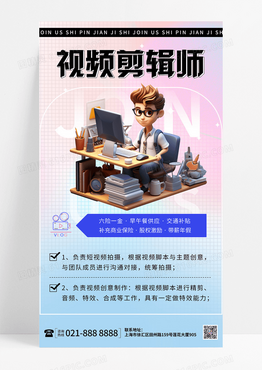 时尚弥散招聘视频剪辑师加入我们寻找发光的你招聘海报