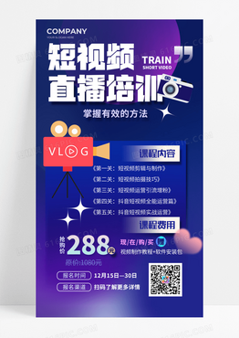 蓝色渐变弥散短视频直播培训方法手机宣传海报