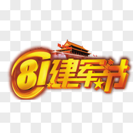一组红色扁平矢量建军节剪影贴纸合集之八一数字素材