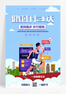健康青绿色小清新健康打卡30天健康运动打卡宣传海报