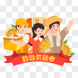 手绘扁平插画风劳动节各行业劳动人民合成元素