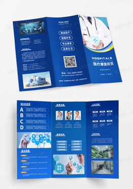 蓝色简约大气医院折页医疗体检中心服务宣传三折页健康体检手册