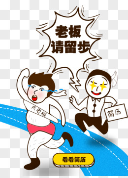 手绘卡通拿着放大镜和简历的HR免抠元素