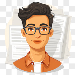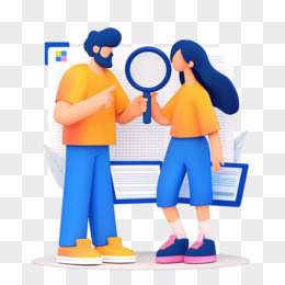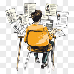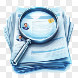 手绘卡通拿着放大镜的HR站在一对简历前免抠元素