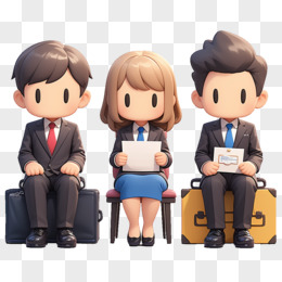 3D插画应聘者坐成一排免抠元素