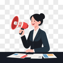 插画一个戴眼镜穿西装的男人拿着扩音器和文件在招聘免抠元素