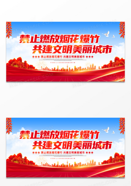 红色禁止燃放烟花爆竹减少城市环境污染展板