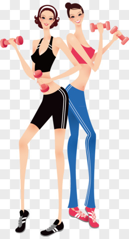 手绘卡通女孩跳健身操锻炼身体免抠素材