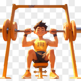 3D素材运动一个男孩在健身房举杠铃免抠元素