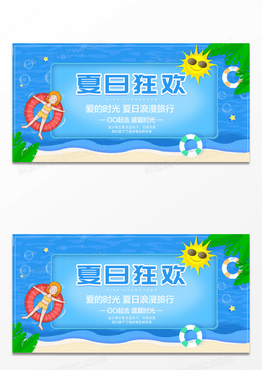 夏天游泳健身卡通插画夏狂欢平面艺术字展板