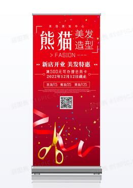 红色美发造型新店开业美发特惠美发展架易拉宝
