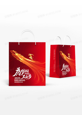 红金酷炫箭头奔向2025梦想科技风手提袋