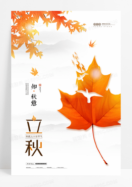 简约树叶飞鸟剪影立秋节气海报