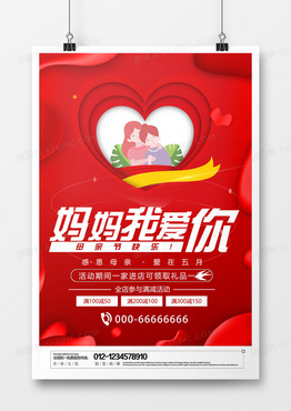 红色喜庆妈妈我爱你母亲节创意宣传海报