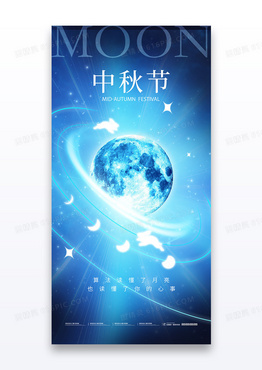 蓝色创意月球中秋节月球星空兔子剪影海报