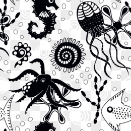 手绘 线条 海洋 黑白 海洋动物 剪影 矢量