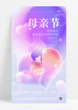 粉色弥散风母亲节人物剪影母亲节宣传手机海报