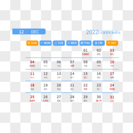 简约风2022年十二月日历元素