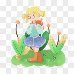 卡通可爱女孩春季春游元素