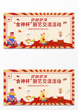 简约条纹2023食神杯厨艺交流活动比赛宣传展板