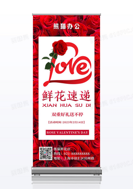 红色简约鲜花速递花店展架设计