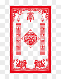 一组手绘插画新年剪纸竖版边框套图合集元素二