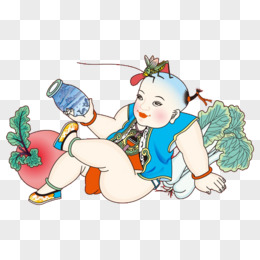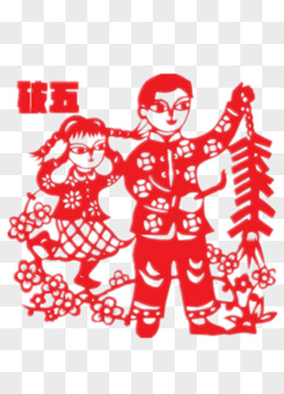 手绘插画风牛年习俗剪窗花贴窗花场景元素
