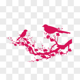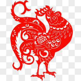 红色剪纸鹦鹉和芙蓉花免抠元素