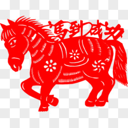 红色扁平风格剪纸小马