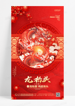 2024手绘矢量剪纸风龙头装饰素材金色立体设计