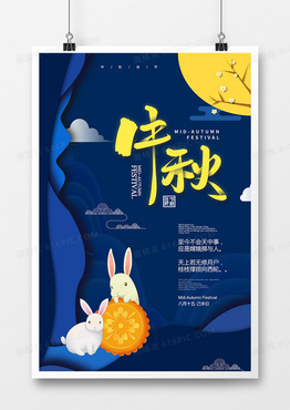 创意卡通剪纸风中秋吃月饼的兔子元素