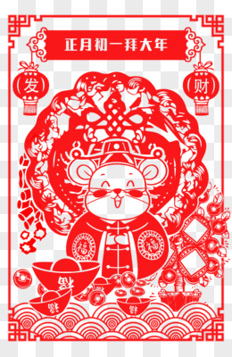 手绘兔年兔子舞狮鞭炮剪纸素材