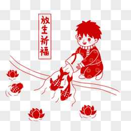 手绘卡通正月初八祈福放生剪纸免抠元素