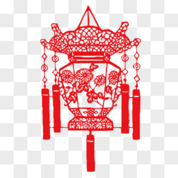 剪纸风一对中国夫妻拿着红色灯笼免抠元素