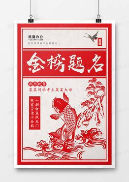 简约鲤鱼跃龙门创意复古金榜题名海报
