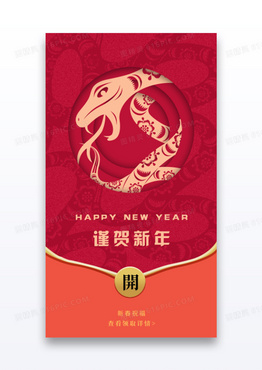红色蛇剪纸纹理2025新年春节微信红包微信红包