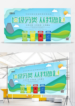 垃圾分类剪纸风展板