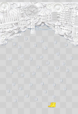 剪纸风白色城市天际线免抠元素