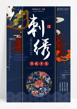 国潮中国风精美古风刺绣文化宣传海报