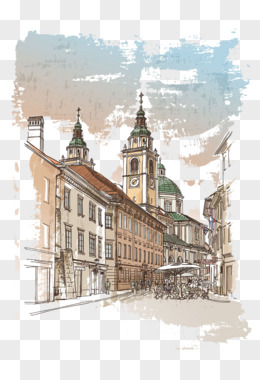 手绘外国建筑物