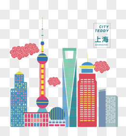 卡通手绘国潮风上海地标元素