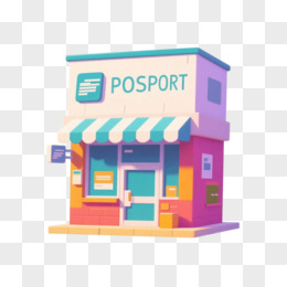 卡通简约动漫风平面建筑建筑大门邮局免抠元素