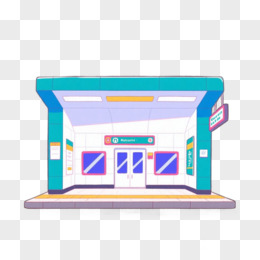卡通简约动漫风平面建筑建筑大门地铁站免抠元素