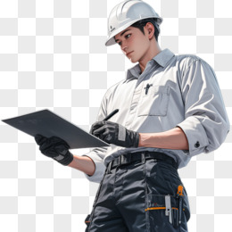 3D漫画风立体建筑工人手拿工具箱免抠元素