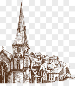 手绘矢量太原天主教堂建筑素材